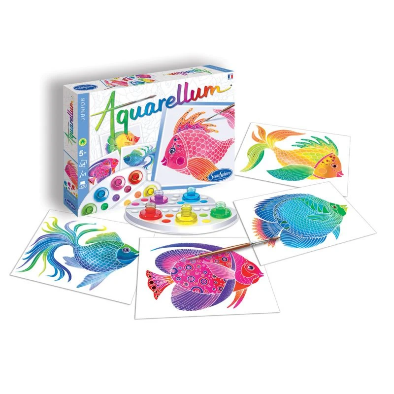 Un coffret avec 4 jolis tableaux de poissons tropicaux à créer de la collection Aquarellum junior accessible dès 5 ans. Les enfants vont s’initier sans difficulté à la peinture à l’aide de cette technique de papier de vélin sertis qui empêche tout débordement et permet d’obtenir des résultats très valorisants. Les encres, non toxiques et lavables, peuvent être facilement mélangées entre elles afin d’obtenir une infinité de nuances laissant ainsi la créativité de l’enfant s’exprimer.