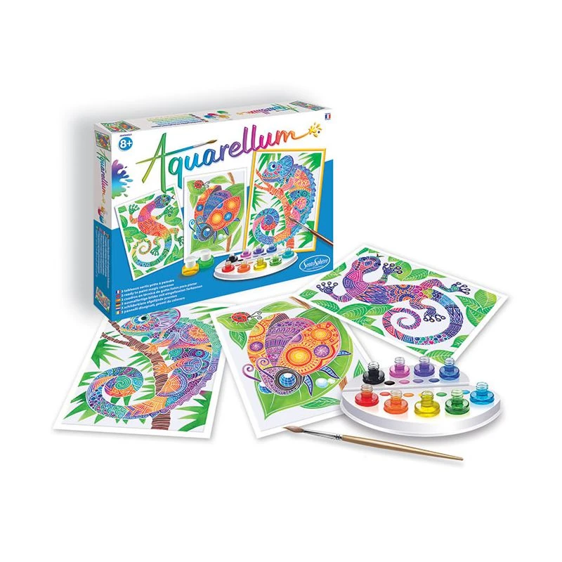 Zentangle est un coffret aquarellum original qui propose de réaliser 3 tableaux d’animaux : une coccinelle, une salamandre et un caméléon. Les animaux sont dessinés à l’aide de multiples motifs géométriques façon mandala. Cet aquarellum qui conviendra aussi bien à un enfant à partir de 8 ans qu’à un adulte, vous permettra de passer un bon moment, de reposer votre esprit et adopter la zen attitude !