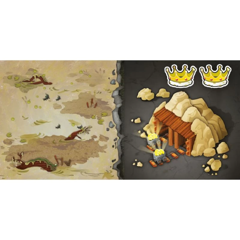 Chaque joueur commencera la partie avec un château et étendra son royaume autour de ce dernier. A la manière des dominos, les joueurs devront faire coïncider les tuiles qu’ils posent avec un paysage déjà posé. Il existe 6 types de paysage et les pièces peuvent également comporter des couronnes qui seront importantes dans le décompte final des points.