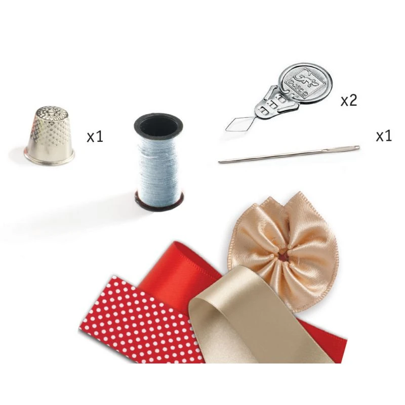 Flamenco de Djeco est un coffret d’initiation à la couture à l’aide de cartes pré-perforées permettant de faciliter le passage de l’aiguille. Il est livré avec des tissus, rubans et dentelles pour créer des vêtements à la manière des stylistes.