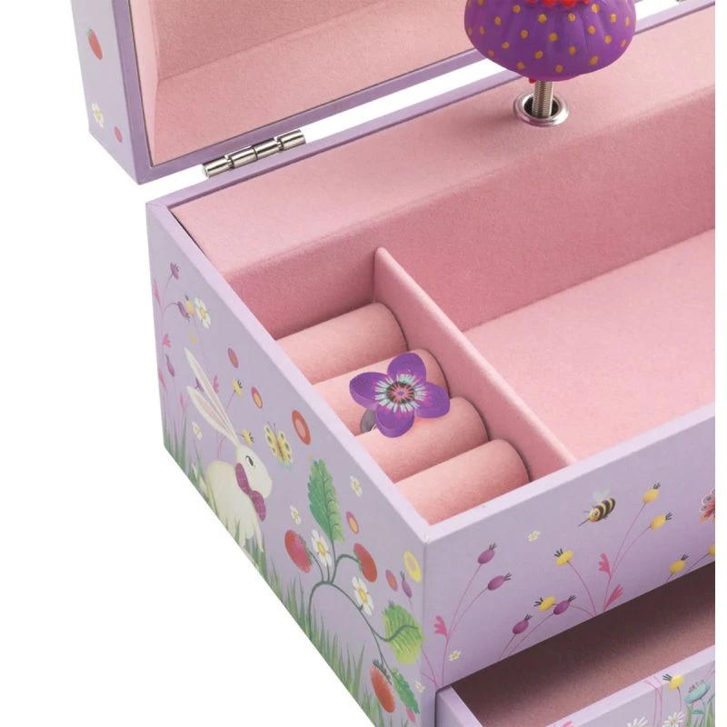 Mélodie de la princesse est une belle boîte à bijoux musicale de la marque Djeco. Les jeunes filles pourront y ranger leurs bijoux et leurs bagues et y cacher leurs petits secrets.