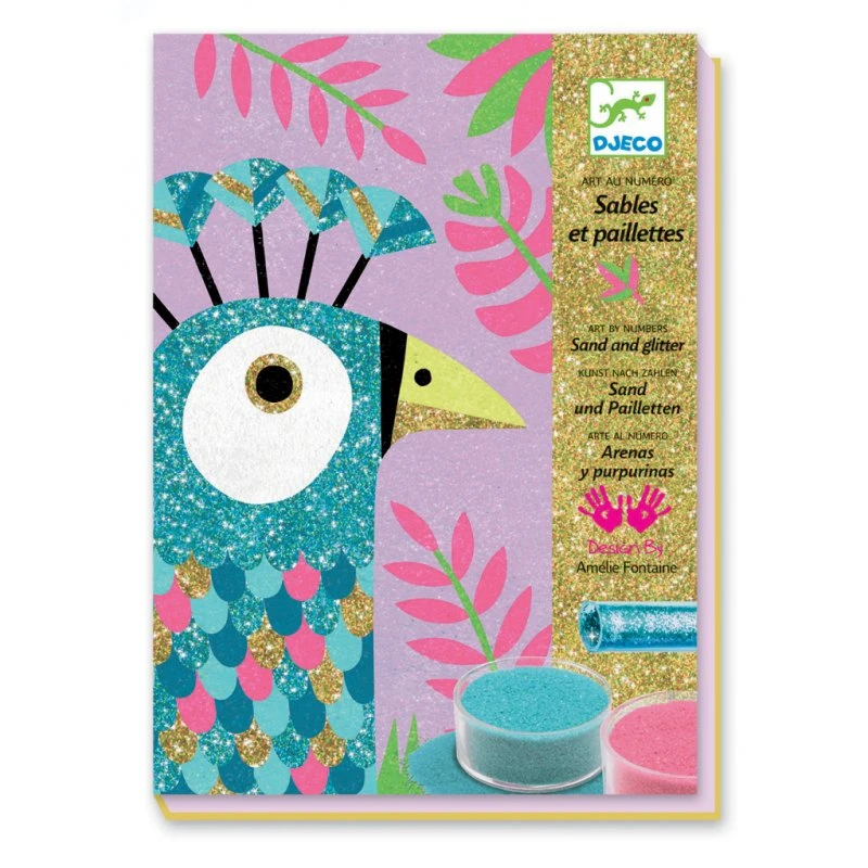 Pas moins de 9 couleurs de sables colorés et 2 tubes de paillettes sont fournis pour donner vie à ces 4 oiseaux magnifiques.
