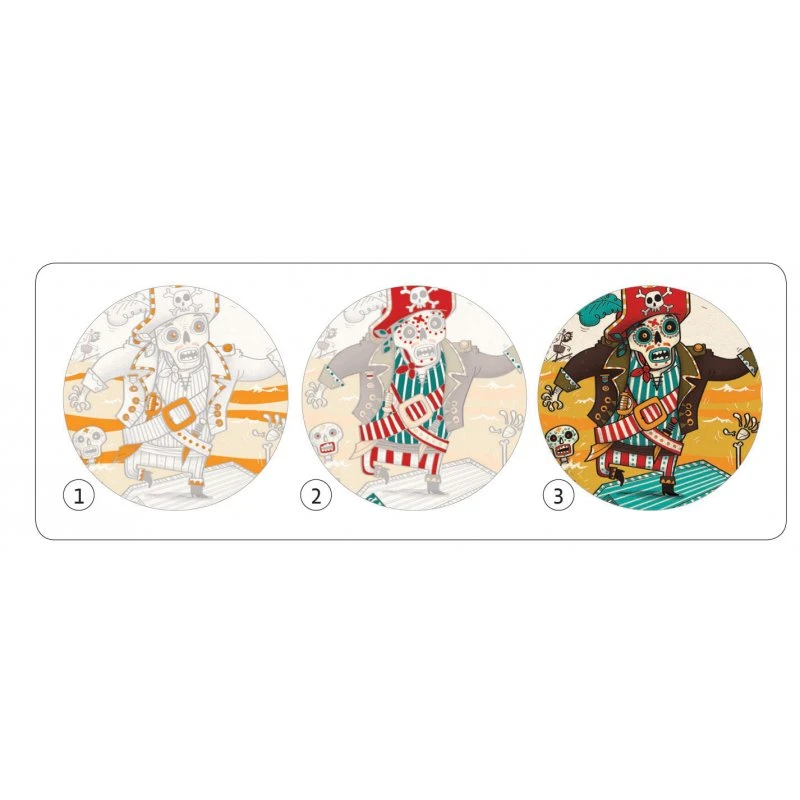 Djeco propose un loisir créatif plus destiné garçon avec ce coffret « Mort de trouille » d’art au numéro avec des illustrations de pirates. Mais attention il va falloir rester calme et concentré pour terrasser ces pirates. De très belles illustrations, des feutres de grande qualité (avec un côté pointe fine et un côté pinceau souple) et un joli coffret pratique pour ranger l’ensemble : de quoi ravir vos petits pirates.