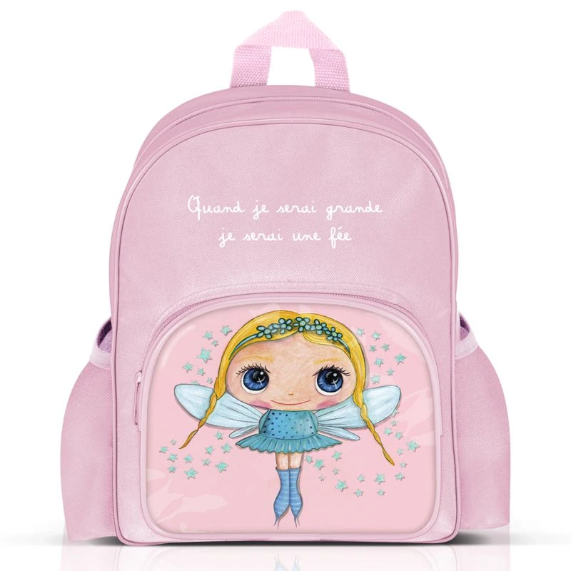 Avec ce grand sac à dos à poches « quand je serai grande je serai une fée » votre fille se sentira pousser des ailes ! Ce sac est très pratique avec sa grande poche centrale permettant de mettre des cahiers de taille A4, sa poche de devant à fermeture éclair et ses deux poches à élastique sur les côtés.