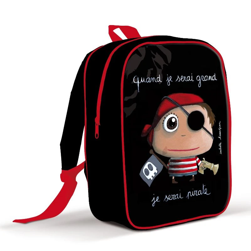 Le grand sac à dos « quand je serai grand je serai pirate » est un sac de la collection quand je serai grand illustré par Isabelle Kessedjian avec des personnages aussi drôles qu’attendrissants. Le grand sac à dos Pirate offre de jolis contrastes avec ses contours surlignés de rouge et son fond noir mettant en valeur le dessin du pirate.