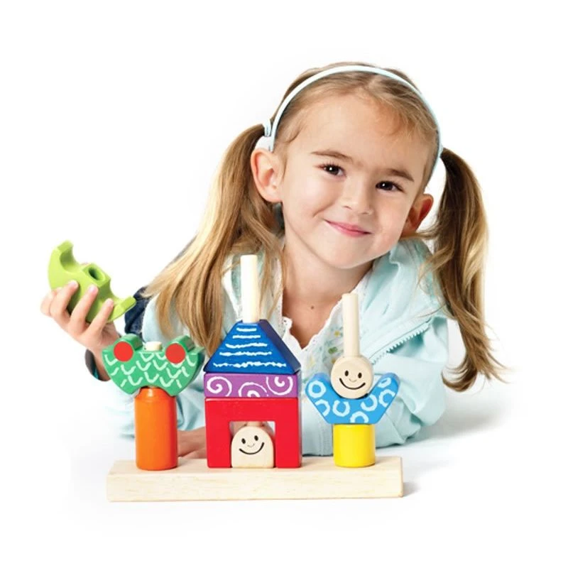 Jour et Nuit est à la fois un casse tête et un jeu à empiler. Les jeunes enfants dès 18 mois pourront s’amuser à empiler les pièces en bois en jouant avec les formes colorées et les têtes de personnage. A partir de 3 ans, ils pourront commencer à reconstituer les figures du livret.