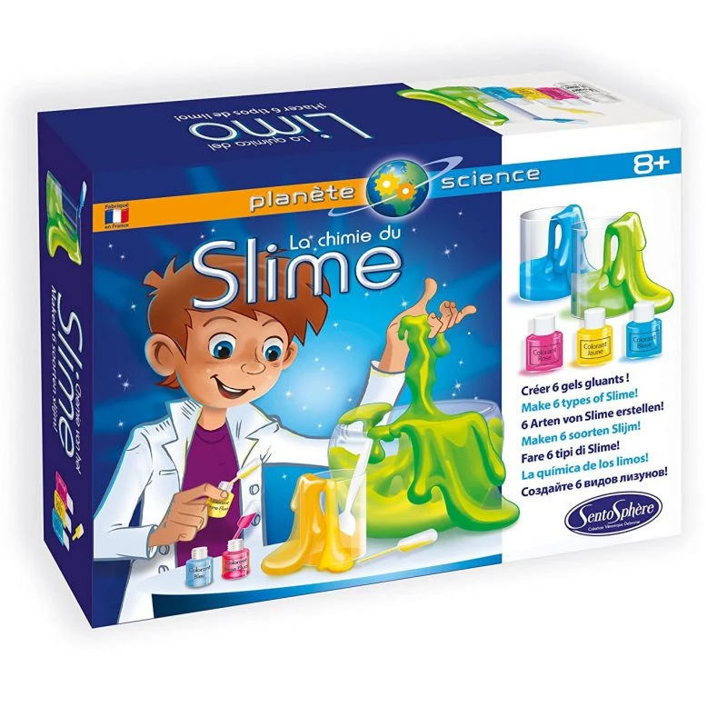 Avec le coffret la chimie du Slime, Sentosphère s’adresse plus particulièrement aux enfants qui veulent faire l’expérience de créer leurs propres slimes en toute sécurité. En plus de la poudre à slime, le coffret propose 3 colorants qui permettront de créer plus de 6 couleurs de slime différentes et surtout des slimes fluorescents ! En plus le coffret comprend 3 petites boîtes pour conserver les pâtes et s’amuser à les faire bruiter (comme de la pâte à prout)