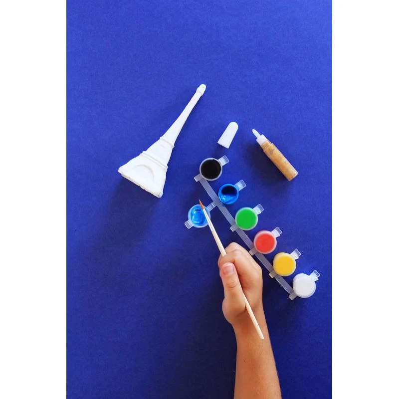 Avec ce coffret original l’enfant pourra réaliser une tour Eiffel plus vraie que nature. La peinture permettra de parfaire la réalisation et le gel à paillettes lui donnera son effet scintillant qui la rend si belle dès la nuit tombée.
