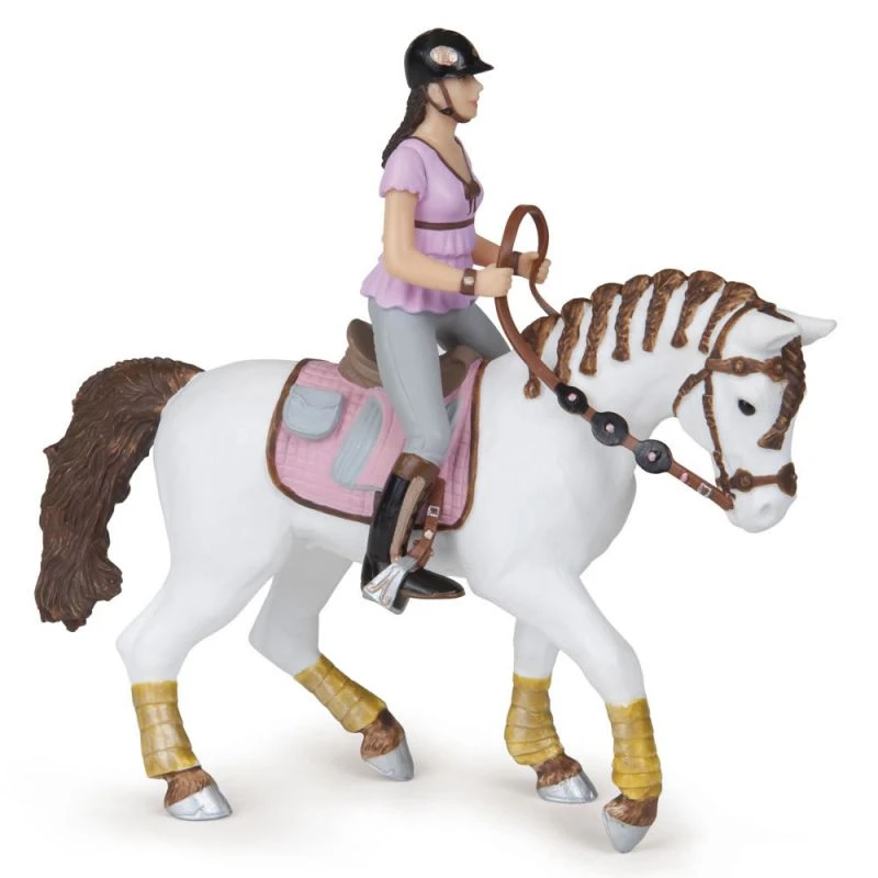 Ce coffret joliment et richement illustré et ces chevaux et cavalières réalistes offriront un univers de jeu qui permettra aux enfants d’inventer de nombreuses histoires autour des parcours d’obstacles, des promenades ou encore du soin des chevaux.