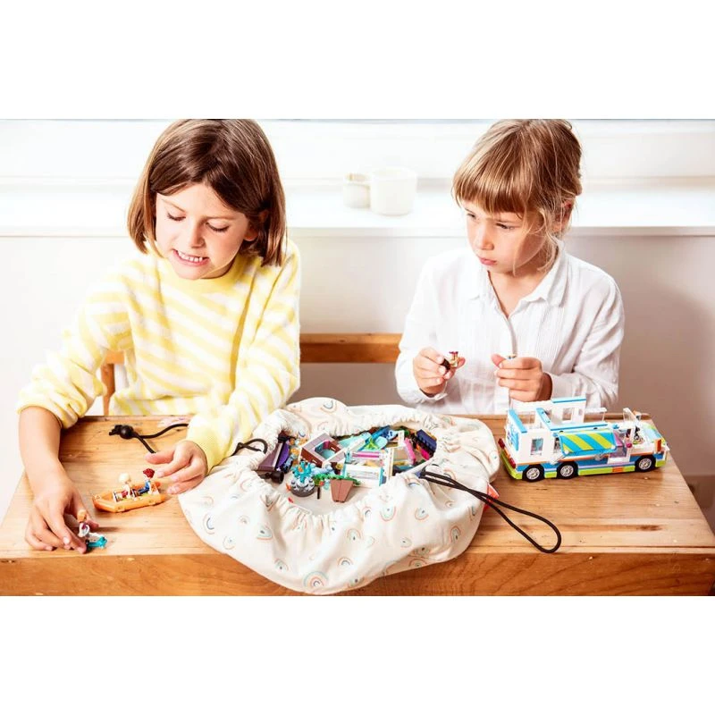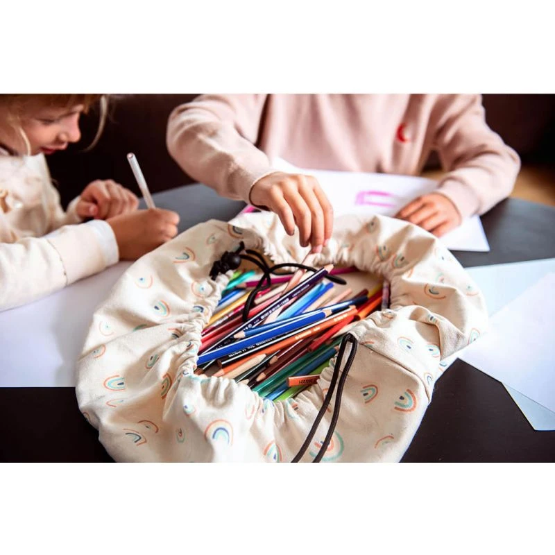 Le sac mini rainbow de Play & Go est un petit sac de rangement (40 cm de diamètre) passe partout. Il pourra aussi bien servir à ranger les jouets d’un enfant que pour transporter les affaires d’un adulte. Avec ses couleurs douces, ses motifs d’arcs en ciel et ses ficelles intégrées faciles à manipuler ce sac de rangement mini rainbow vous sera vite indispensable.
