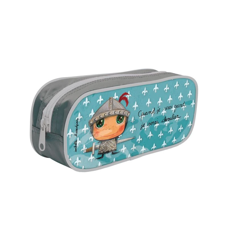 Retrouvez le vaillant chevalier de l’artiste Isabelle Kessedjian sur cette trousse bleue et grise qui donnera du courage à votre petit garçon pour aller affronter l’école. A la fois très design et pleine d’humour cette trousse conviendra aussi bien aux tous petits qu’aux enfants plus âgés.